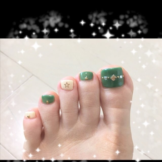 秋の人気色 カーキ を使用して 大人シンプルなフットネイル