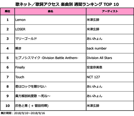 米津玄師 Lemon が大台の30週連続1位到達 惜しまれながら引退した