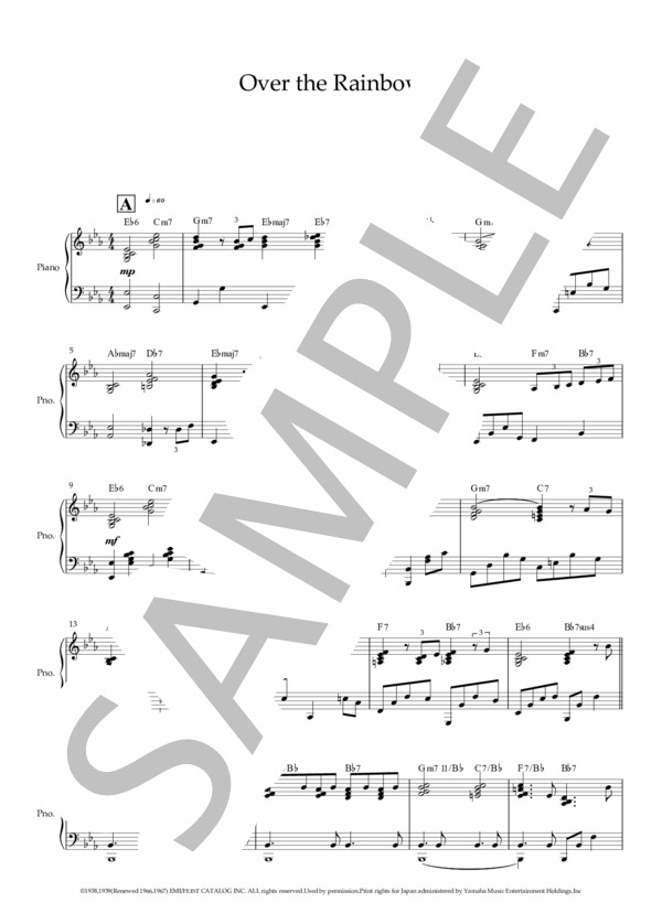 楽譜 Over The Rainbow 虹の彼方に Harold Arlen ピアノ 伴奏